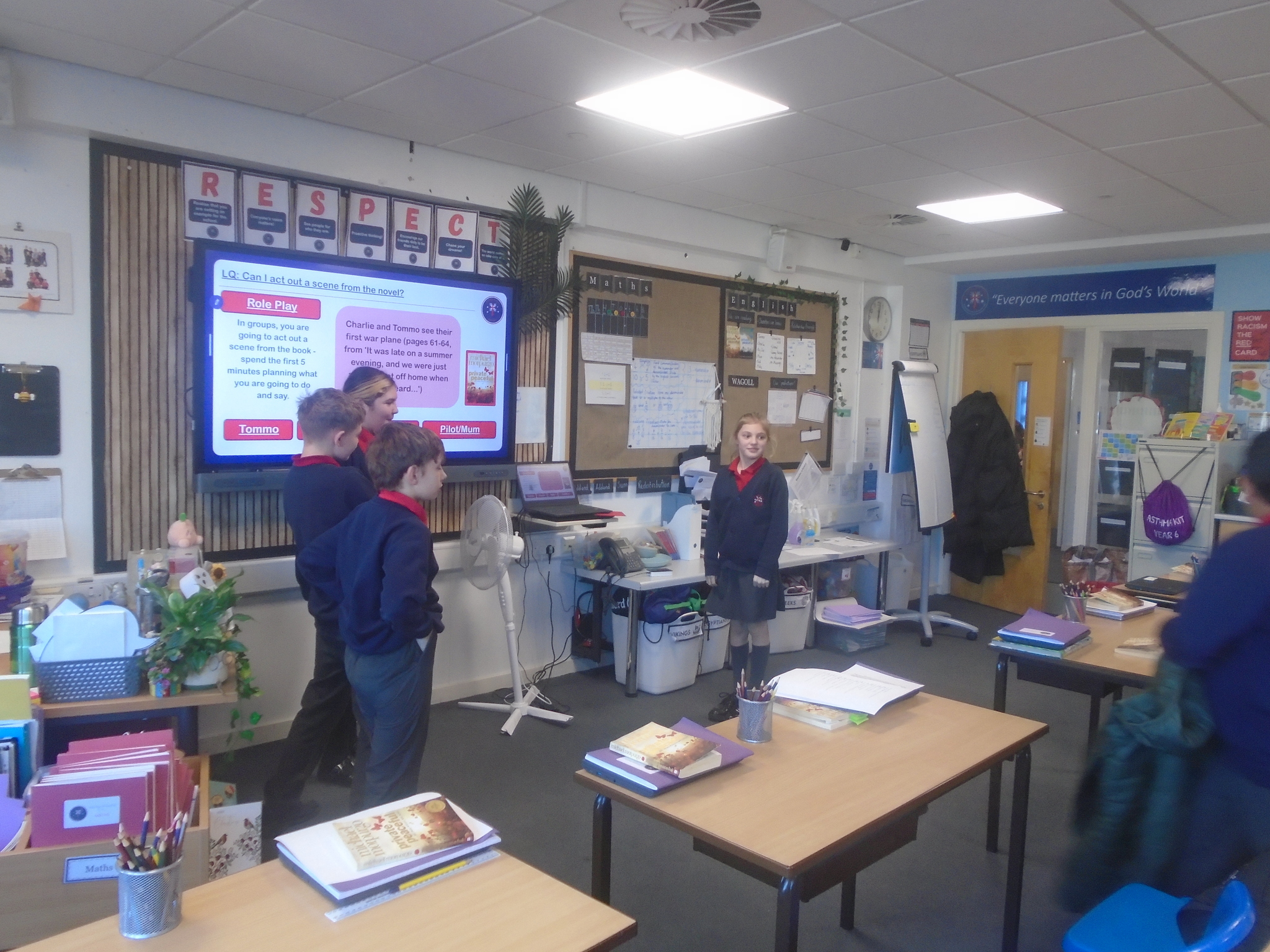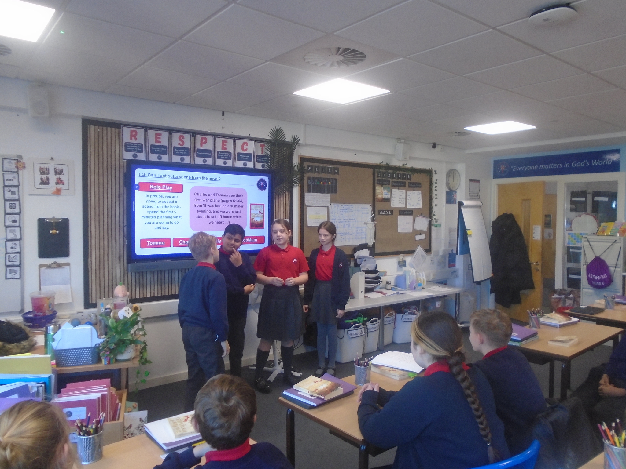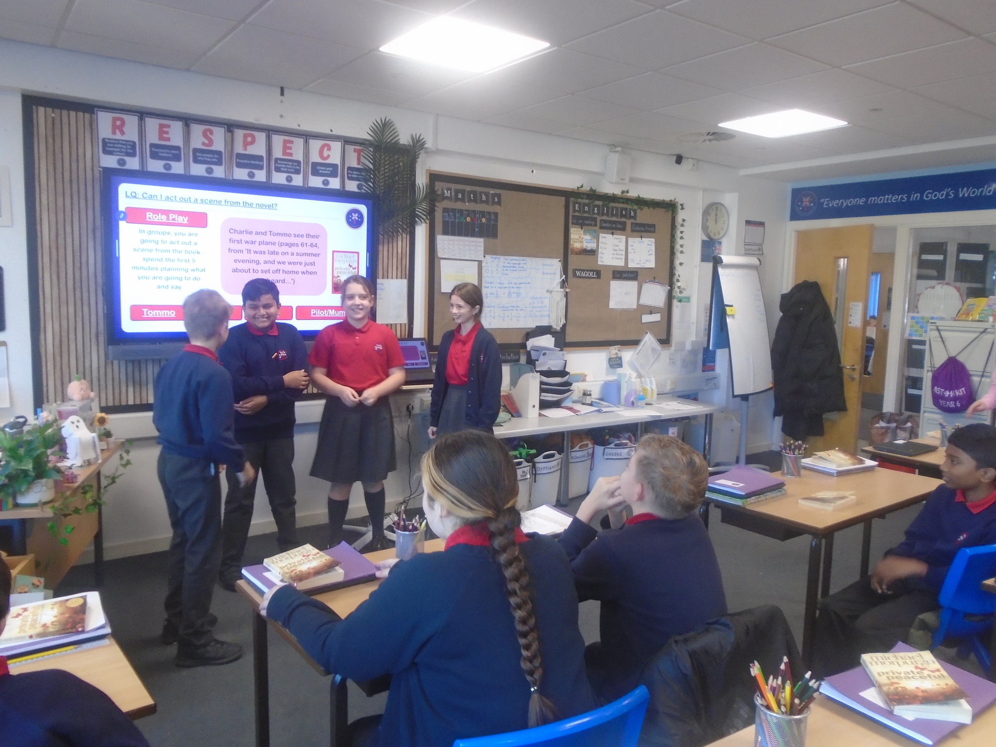 In English, we have been reading ‘Private Peaceful’. Our outcome for this lesson was to write a diary in the perspective of the main character (Tommo). To help the children remember the events of the book, we had a go at some role play. We have some fantastic actors and actresses in Class 6.