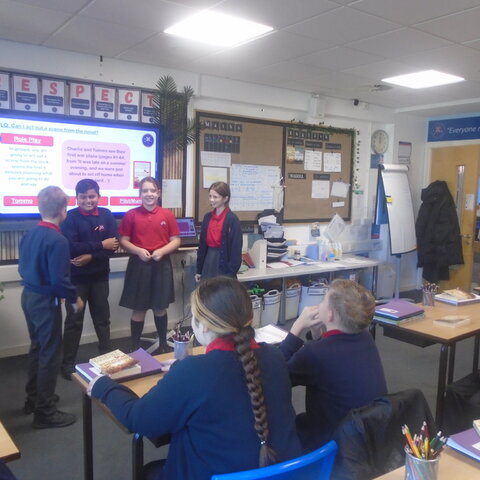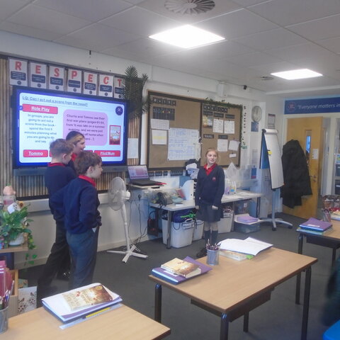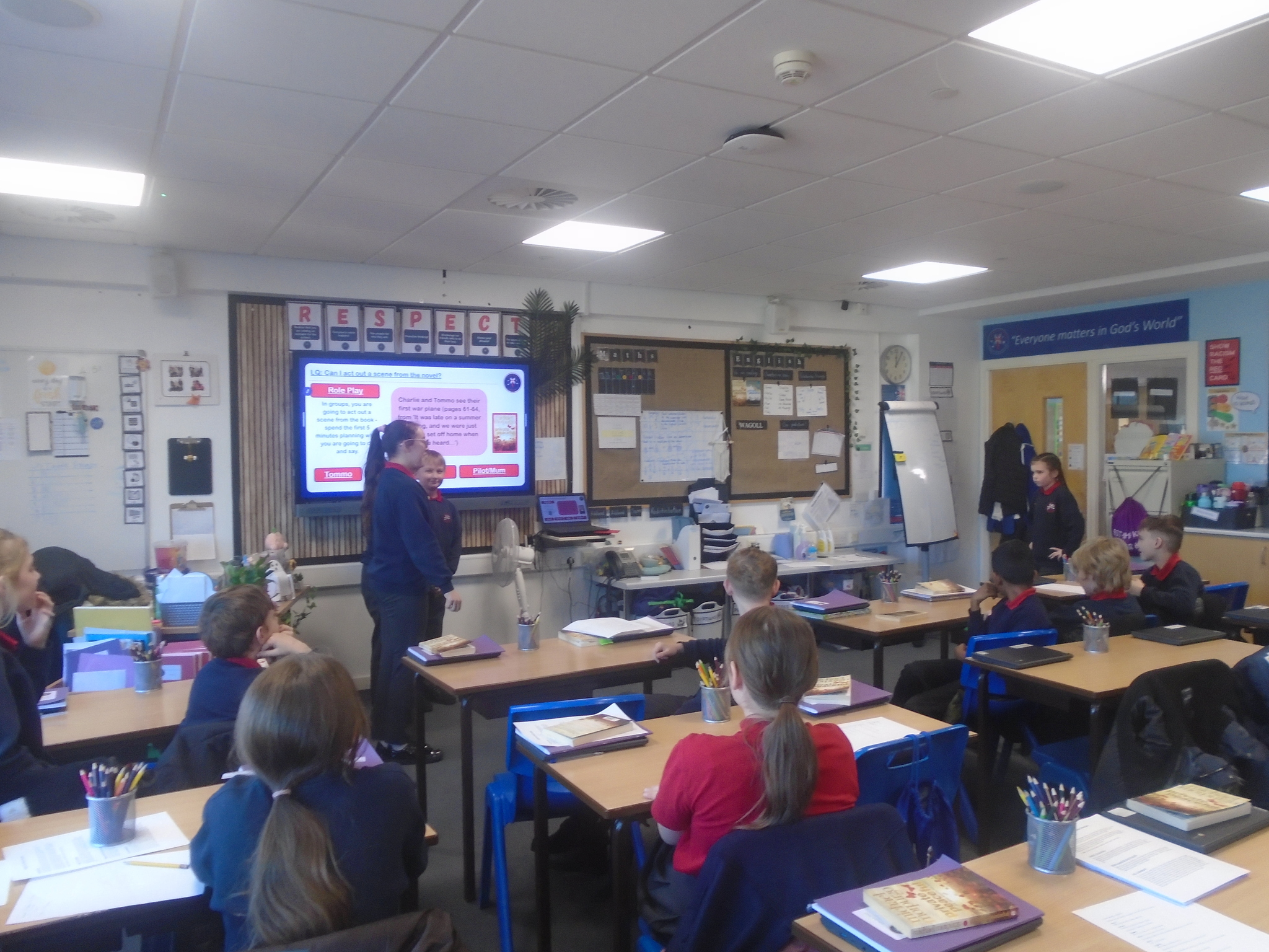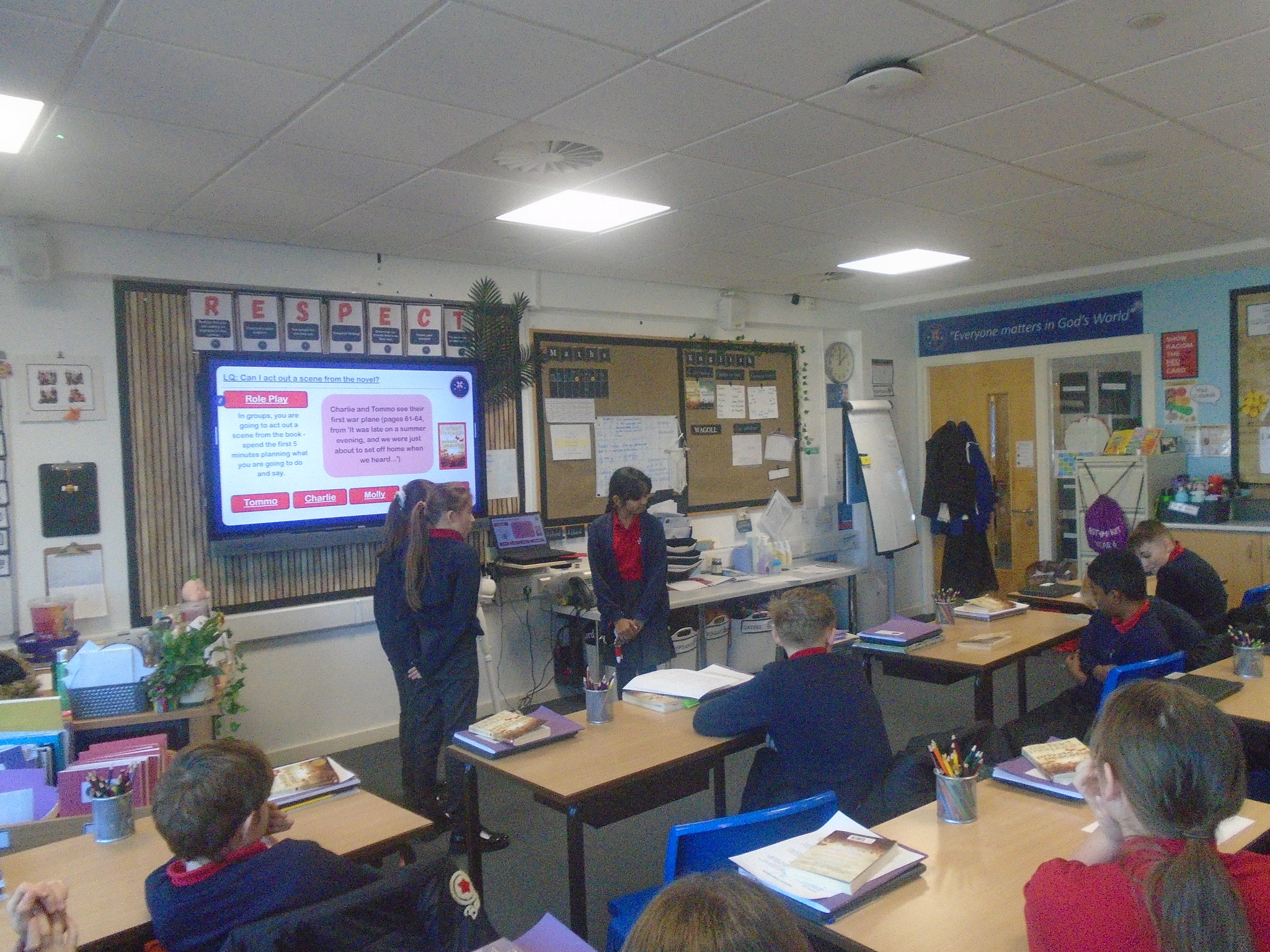 In English, we have been reading ‘Private Peaceful’. Our outcome for this lesson was to write a diary in the perspective of the main character (Tommo). To help the children remember the events of the book, we had a go at some role play. We have some fantastic actors and actresses in Class 6.