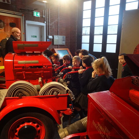 Class 2 had a brilliant trip to Fireground in Rochdale. They learnt about the Great Fire of London and the history of fire fighting. The trip was very interactive with lots to do and explore in the museum. The children enjoyed sliding down a fire fighters pole, dressing up, going in a fire engine, using a hose and much more.