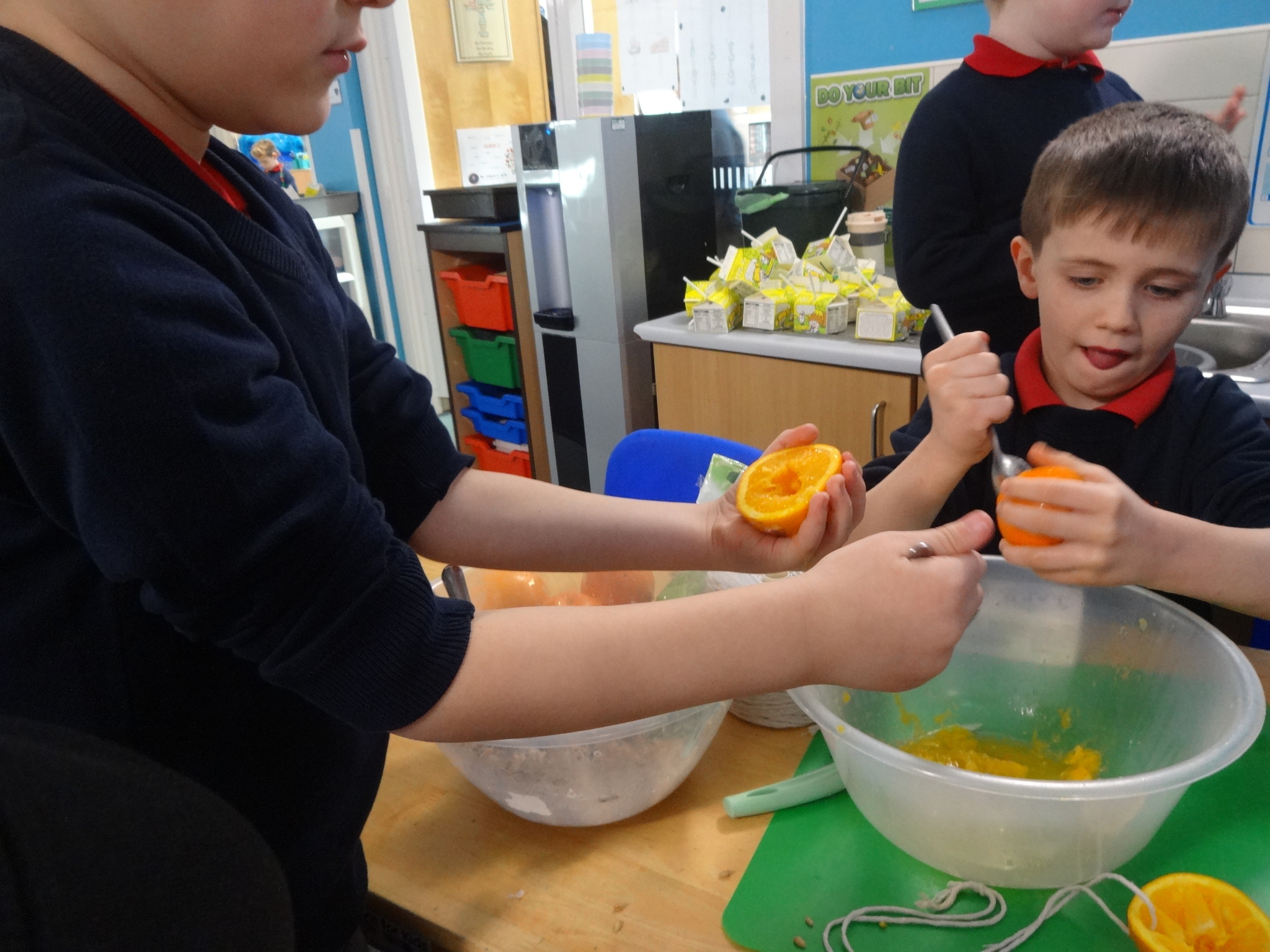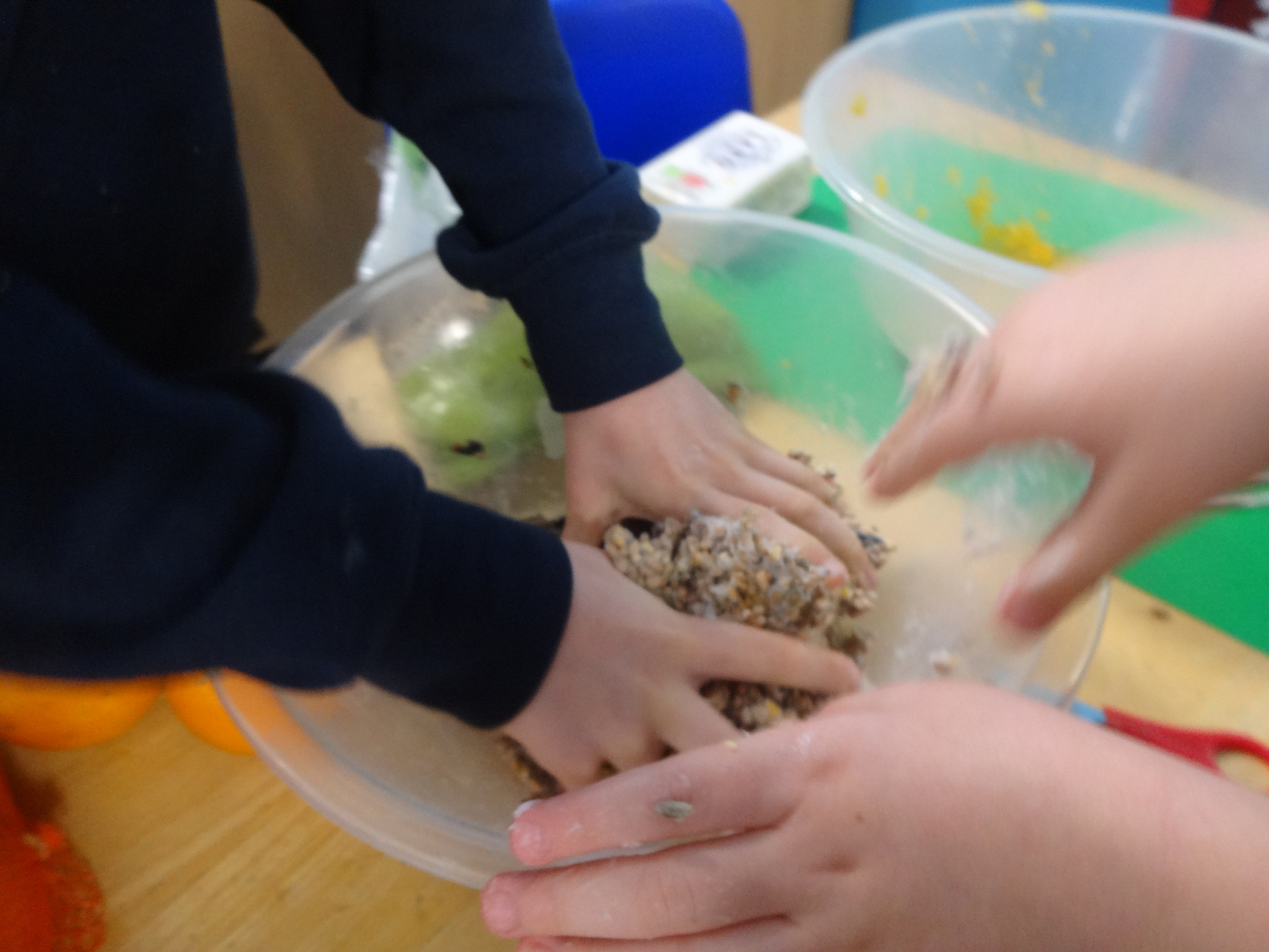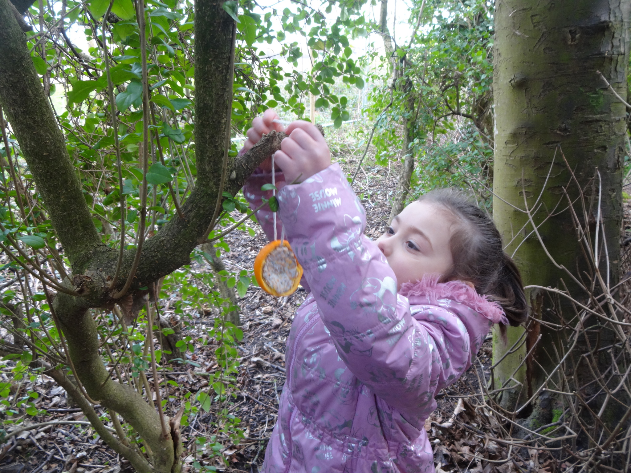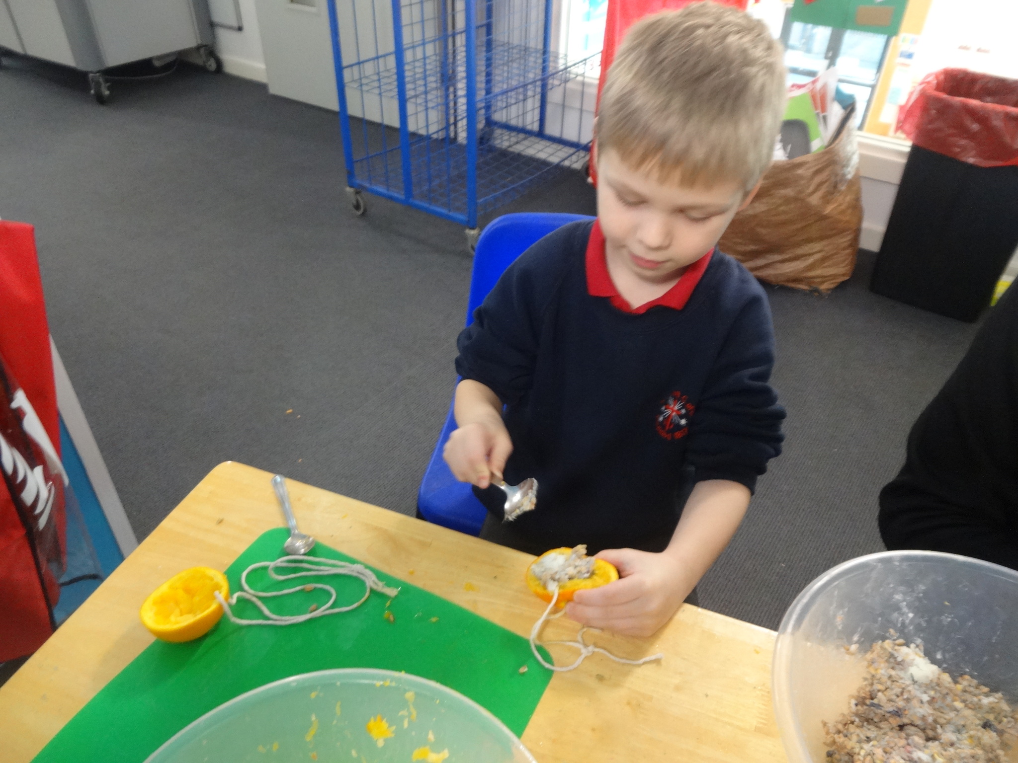 Class 2 had fun making bird feeders from oranges, lard and seeds. We took our bird feeders with us on our nature trip to the Rock Gardens. We thought about why birds might need extra food in winter and then hung our feeders in the trees. We hope the birds enjoy eating them!
