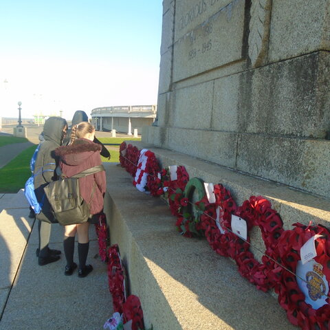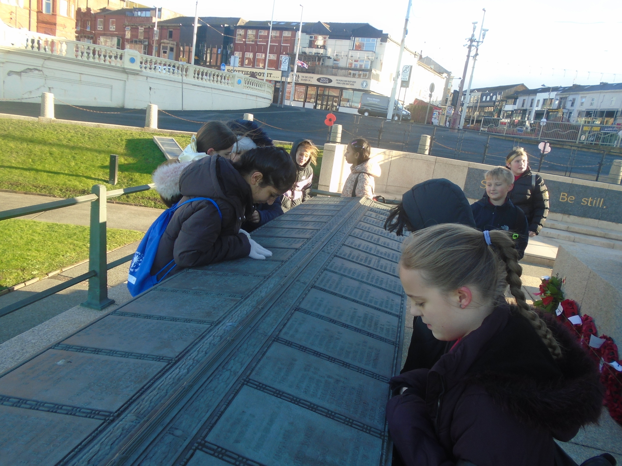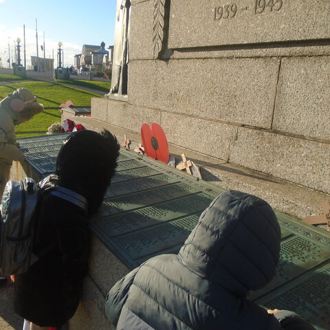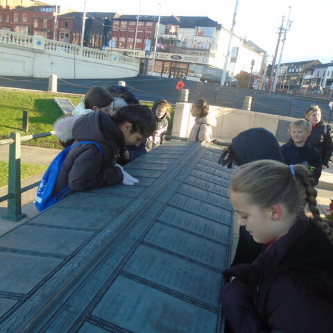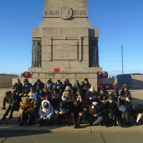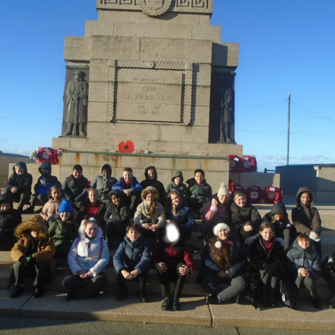 Class 6 braved the cold weather and visited the cenotaph as part of their WW1 history topic. They all chose a name in class and were challenged to find the name when they got to the cenotaph. They also looked at all the different wreaths and who had put them there.