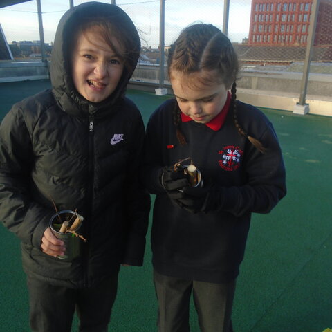 Class 6 went out in the windy weather and helped to make bug hotels for the top deck. We hope this will encourage wildlife to the area!