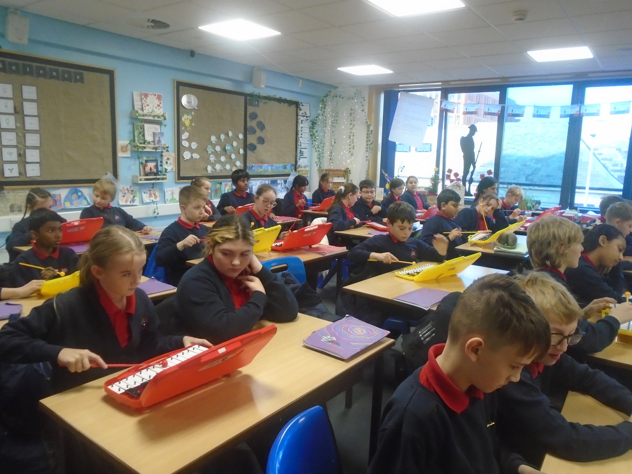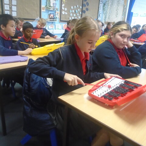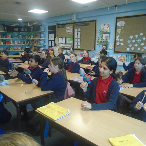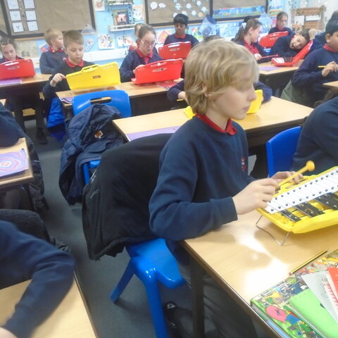 ‘Pharrell Williams - Happy’ has been our focus in music this half term. The children have enjoyed learning and singing the song and taking it in turns to sing the lead part and the back up. The children also used the glockenspiels to accompany the music. In addition to the glockenspiels, the children have loved using our new percussion instruments.