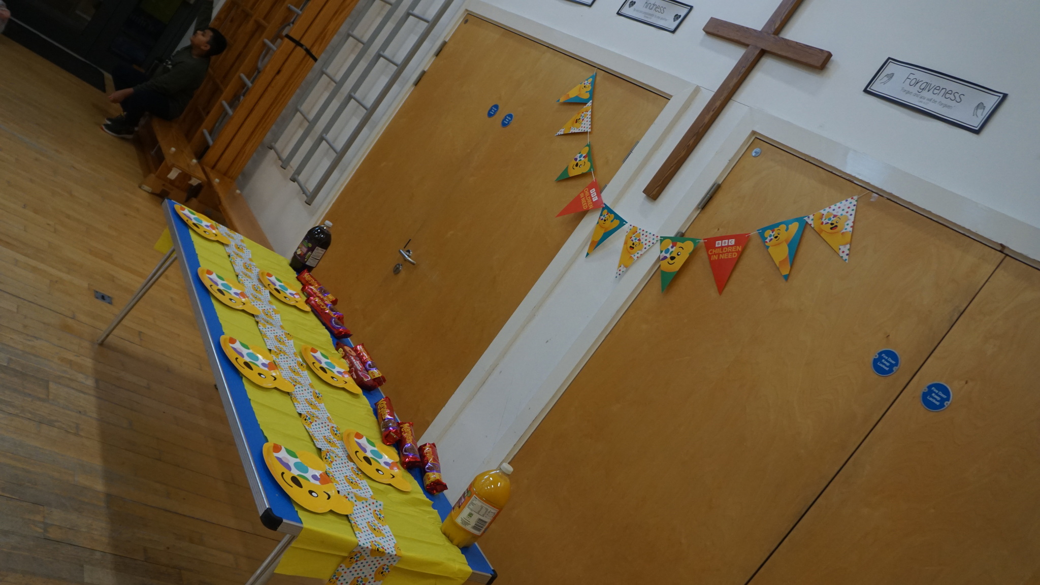 Class 6 enjoyed their cookies and juice for Children in Need.
